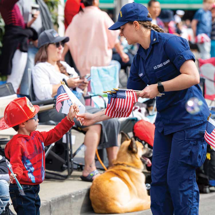 U.S. Coast Guard servicemembers participate in an Independence Day Parade on Alameda Island, Calif., on July 4, 2023 (U.S. Coast Guard photo by Petty Officer 3rd Class Hunter Schnabel).