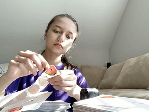 NOTES OF THANKS: Taylor Curro, Virginia Unit 49 Junior member, decorates postcards for veterans and servicemembers.