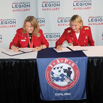 American Legion Auxiliary National Headquarters and Tragedy Assistance Program for Survivors (TAPS) commemorated their alliance by signing a Memorandum of Understanding (MOU) to expand collaboration and strengthen support for the families of America’s fallen servicemembers, veterans, and active-duty servicemembers.